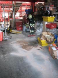 Die Rückstände wurden mittels Bindemittel unter leichtem Atemschutz gebunden und mit einem Sauger aufgesaugt.