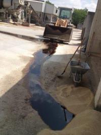 Die Ölmengen von der Betriebsanlage bis zum Becken wurden mithilfe der angerückten Einsatzmannschaft der Feuerwehr Hart gebunden und im Anschluss ebenso vom Saugpumpwagen aufgenommen.