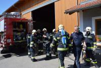 Von der Mannschaft des KLFA wurde währenddessen eine Wasserversorgung für das RLFA aufgebaut. Ein weiterer Trupp der FF-Hörsching drang ebenfalls in den verrauchten Keller vor und öffnete den Hackschnitzelbunker. In Bereitschaft stand ein Atemschutztrupp der FF-Breitbrunn welcher für die abschließende Kontrolle des Brandbereiches noch in den Einsatz geschickt wurde.