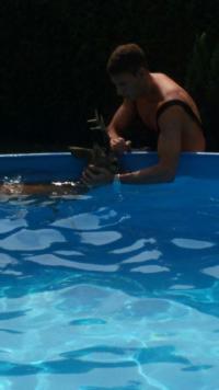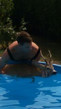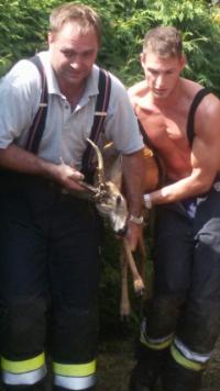 Ein Rehbock war in eine zur hälfte eingegrabenen Pool gesprungen und konnte diesen aus eigener Kraft nicht mehr verlassen. Die Mannschaft konnte den Bock schnell aus dem Pool retten und ihn nach einer kurzen Erholungsphase in einem nahegelegenen Feld wieder frei lassen.