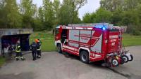 Zu einem Brand eines Abfallcontainers im Bereich des Skaterparkes wurden wir am Nachmittag alarmiert. Mit dem C-Schnellangriffsrohr (Haspel) des neuen RLFA 2000/200 konnte der Kleinbrand umgehend eingedämmt werde. Nach der polizeilichen Aufnahme konnten wir wieder einrücken.