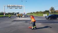 Grund der Alarmierung war jedoch kein Verkehrsunfall sondern ein LKW der im Kreuzungsbereich einen Teil seiner Ladung (Schotter) verloren hatte.