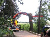 Hierzu mussten teils schwere Geräte herangezogen werden. Konkret standen 2 LKW’s mit massiven Ladekränen, mehrere Traktoren sowie 2 Bagger im Einsatz.