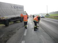 Nach einem Auffahrunfall auf der B1 wurde die FF Rutzing zur Hilfe gerufen. Beim Eintreffen am Einsatzort wurde bereits durch die Polizei immer wechselweise je eine Fahrbahn gesperrt. Die Aufgabe der Feuerwehr bestand darin, das ausgelaufene Öl auf einer Strecke von ca. 200m zu binden. 8 Mann der FF Rutzing im Einsatz
