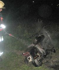 Die bereits anwesende FF-Hörsching konnte das in einem Feld liegend brennende Mofa bereits löschen.