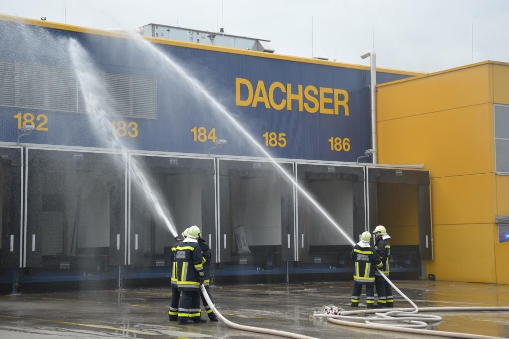 Am Firmengelände der Spedition Dachser war in einem Stiegenhaus ein Brand ausgebrochen. Mehrere Mitarbeiter waren in den Büroräumlichkeiten durch Brandrauch eingeschlossen und mussten von den Atemschutztrupps gerettet werden.