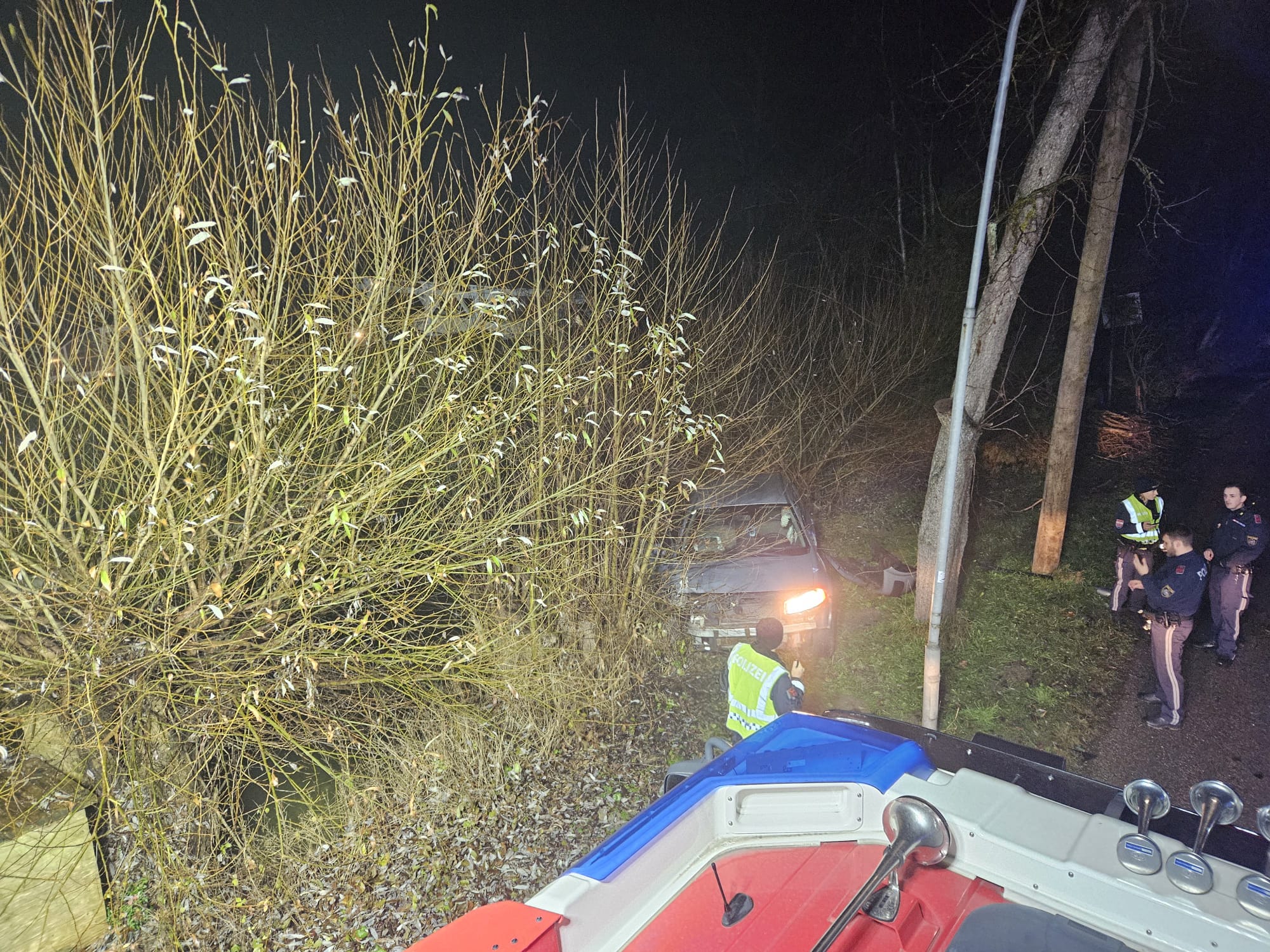 T 52 | Technischer Einsatz, Mühlbachstraße | 19.12.2025 | 20:46 bis 22:13 Zu Aufräumarbeiten nach einem Verkehrsunfall wurde die Feuerwehr Rutzing am Abend des 19. Dezember in die Mühlbachstraße alarmiert. Die erst eintreffenden Einsatzkräfte wurden bereits von einem Kameraden empfangen, welcher die Unfallstelle bereits absicherte. Das Lagebild stellte sich dann jedoch dramatischer dar, als aus der Alarmierung entnehmen hätte werden können. Ein Fahrzeug ist in einer leichten Linkskurve von der Straße abgekommen und entwurzelte dabei mehrere Sträucher und touchierte noch einen Strommasten. Danach kam das schwer beschädigte Fahrzeug am Ufer des Mühlbaches zu stehen, sämtliche Sicherheitsfunktionen (Airbags) hatten ausgelöst, vom Fahrer fehlte jedoch jede Spur.