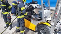 Ein Stapler hatte im Hallenbereich Feuer gefangen. Die Mitarbeiter der betroffenen Firma reagierten geistesgegenwertig und brachten das brennende Gerät ins Freie und starteten sogleich erste Löschmaßnahmen mit einem Gartenschlauch und konnten so den Brand bis zum Eintreffen der Feuerwehr unter Kontrolle halten.