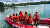 Neben einer spannenden Bootsfahrt auf der Traun konnten die Kids auch unser Rüstlöschfahrzeug und die wasserführenden Armaturen genau unter die Lupe nehmen. Die Begeisterung war groß – vor allem, wenn es hieß: Wasser marsch!