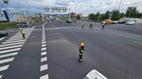 Ölspur im Kreuzungsbereich B1XB133. Kurze Sperre des Kreuzungsbereichs und binden der Ölspur.